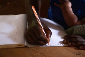 « La formation se passe très bien, le projet Mwanamke Tenda nous instruit non seulement avec des thématiques sur la protection de l’environnement et le climat, les Activités génératrices de revenus AGR et comment maintenir notre caisse mais voilà qu’il y a aussi l’alphabétisation ainsi que d’autres thèmes transversaux tels que: le Genre, PAES, Santé sexuelle et Reproduction… Les formateurs nous encadrent dans un bon climat sans stress ni honte. Présentement, je sais écrire mes deux noms : Dori et Alliance mais pour les autres, j’ai encore des difficultés. J’avais beaucoup de peine de voir lors des réunions/formations les autres écrire. J’avais aussi une grande peur de pouvoir m’exprimer sachant que je suis analphabète. Maintenant mon cœur est rempli de joie et de gratitude car grâce à cette formation, je me sens importante dans notre société. Nous disons grand merci à la Caritas Goma et qu’elle puisse continuer avec ce projet où la femme a de la valeur ».